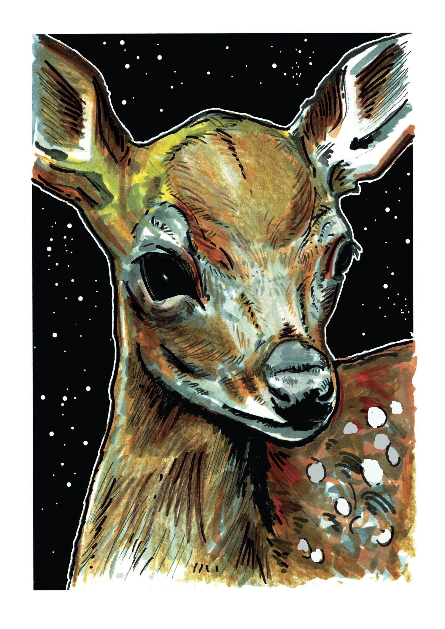 Printed from a hand drawn illustration of a Deer, by illustrator Nick Gribbon.